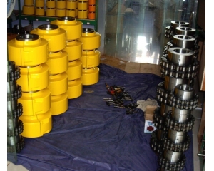 鏈條聯(lián)軸器具有結構簡單(四個件組成)、裝拆方便、拆卸時不用移動被聯(lián)接的兩軸、尺寸緊湊、質量輕、有 補償能力、對安裝精度要求不高、工作、壽命較長、成本較低等優(yōu)點。滾子鏈聯(lián)軸器 可用于紡織、農機、起重運輸、工程、礦山、輕工、化工等機械的軸系傳動,適用于高溫、潮濕和多塵工況環(huán)境,不適用高速、有劇烈沖擊載荷和傳遞軸向力的場合,鏈條聯(lián)軸器應在良好的潤滑并有防護罩的條件下工作。鏈條聯(lián)軸器是利用公用的鏈條,同時與兩個齒數相同的并列鏈輪嚙合,不同結構型式的鏈條聯(lián)軸器主要區(qū)別是采用不同的鏈條,常見的有雙排滾子鏈聯(lián)軸器、單排滾子鏈聯(lián)軸器、齒形鏈聯(lián)軸器、尼龍鏈聯(lián)軸器等。雙排滾子鏈聯(lián)軸器性能優(yōu)于其他結構型式的聯(lián)軸器,為 廣泛采用KC滾子鏈聯(lián)軸器,我國亦已制訂為 標準GB6069-2002 。