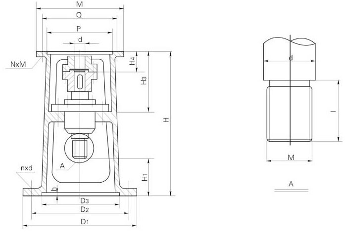 雙支點機架,不宜于選用無支點、單支點機架時,應(yīng)選用雙支點機架。但選用的雙支點機架下支點軸承結(jié)構(gòu)采用帶緊定套的錐孔調(diào)心滾子軸承便利于安裝維修,且攪拌軸與減速機之間的聯(lián)接   選用HL型彈性柱銷聯(lián)軸器。