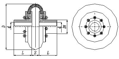 | 型號 | 公稱轉(zhuǎn)矩 Tn N.m | 許用轉(zhuǎn)速(n) r/min | 軸孔直徑 d1,d2 | 軸孔長度 | 尺寸 mm | 螺栓 | ||