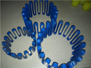 梯形截面的蛇形彈簧片采用   彈簧鋼,經(jīng)嚴(yán)格的熱處理,并加工而成,具有良好的機(jī)械性能,從而使聯(lián)軸器的使用壽命遠(yuǎn)比非金屬?gòu)椥栽?lián)軸器大為增長(zhǎng)。